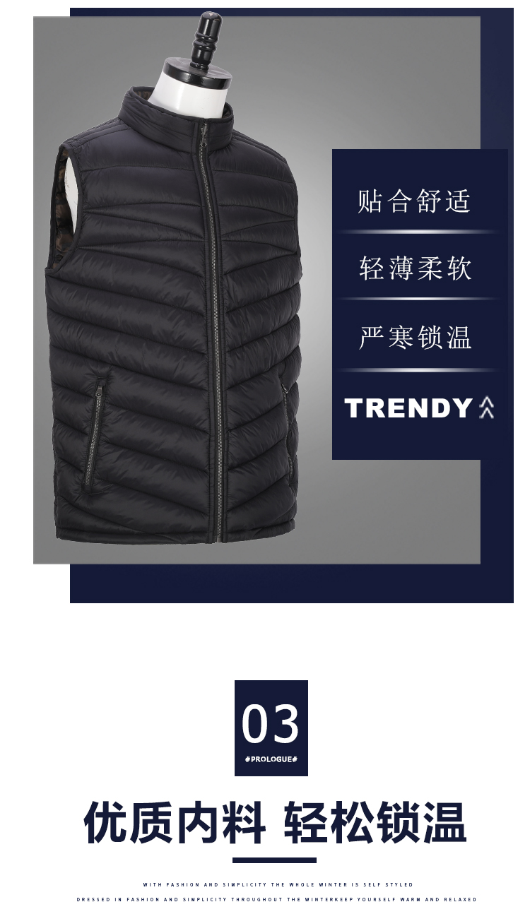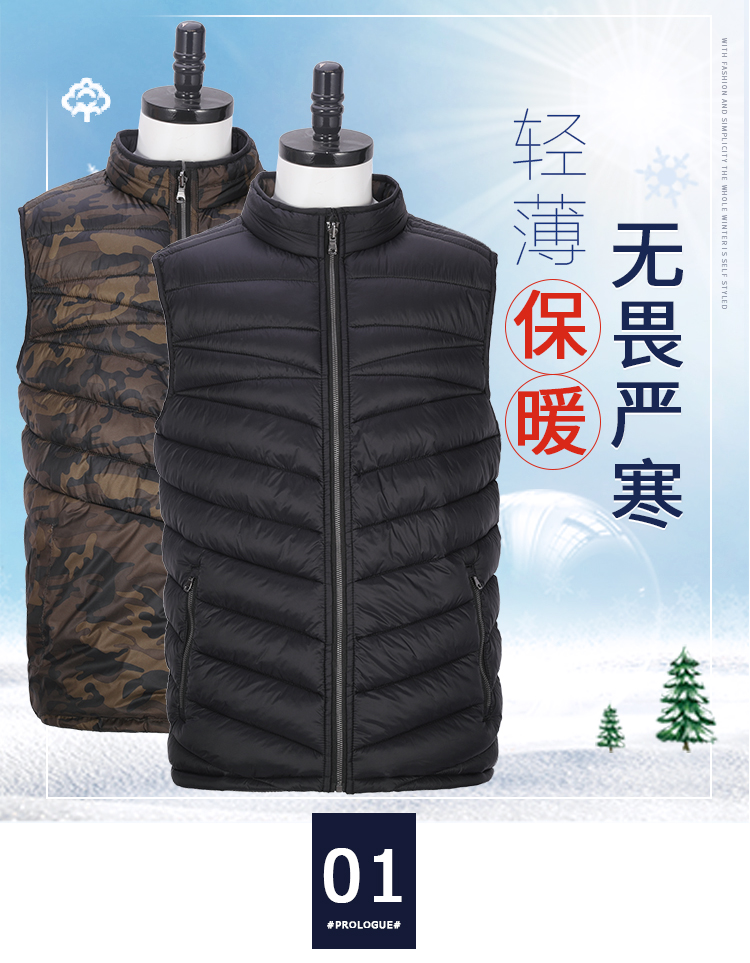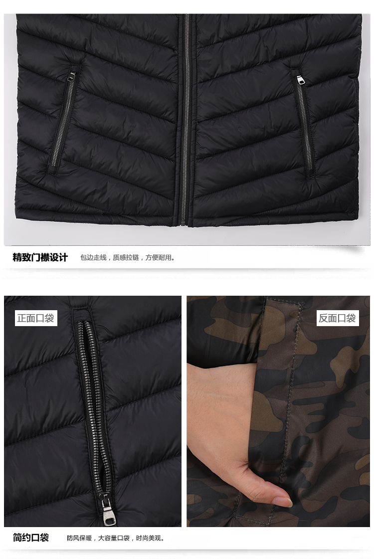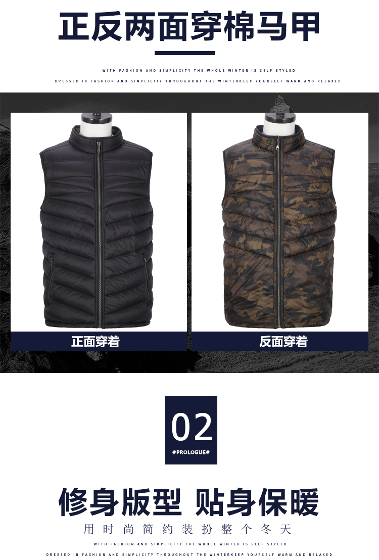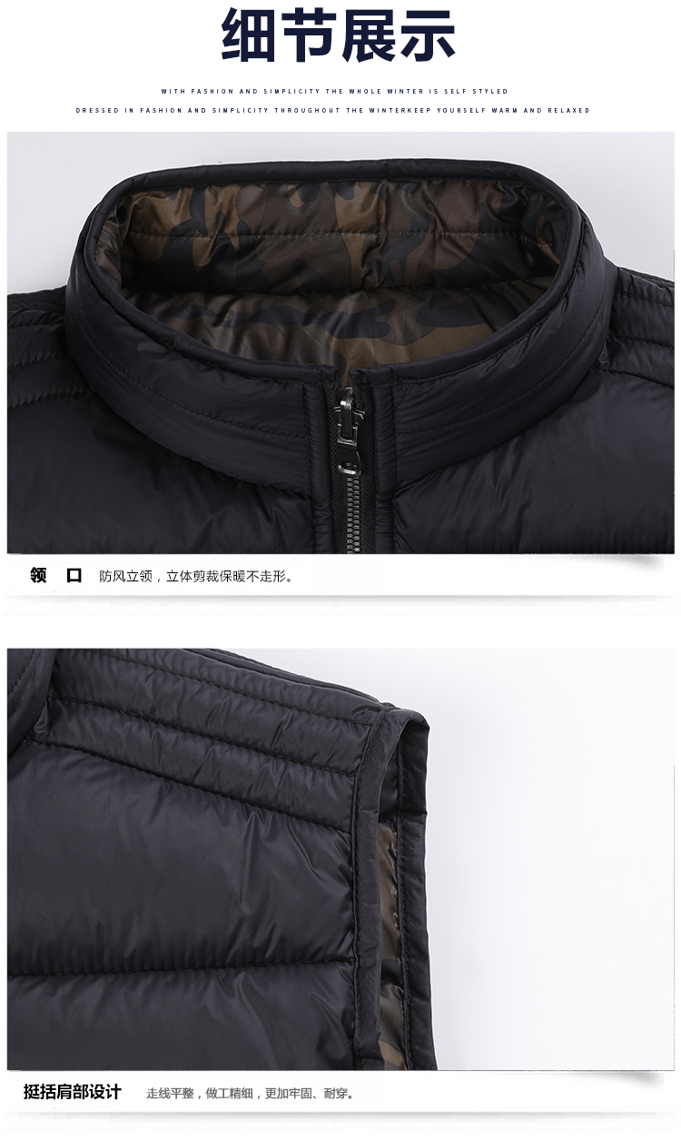 男式秋冬时尚透气双面穿轻薄防水防风保暖棉马甲棉背心