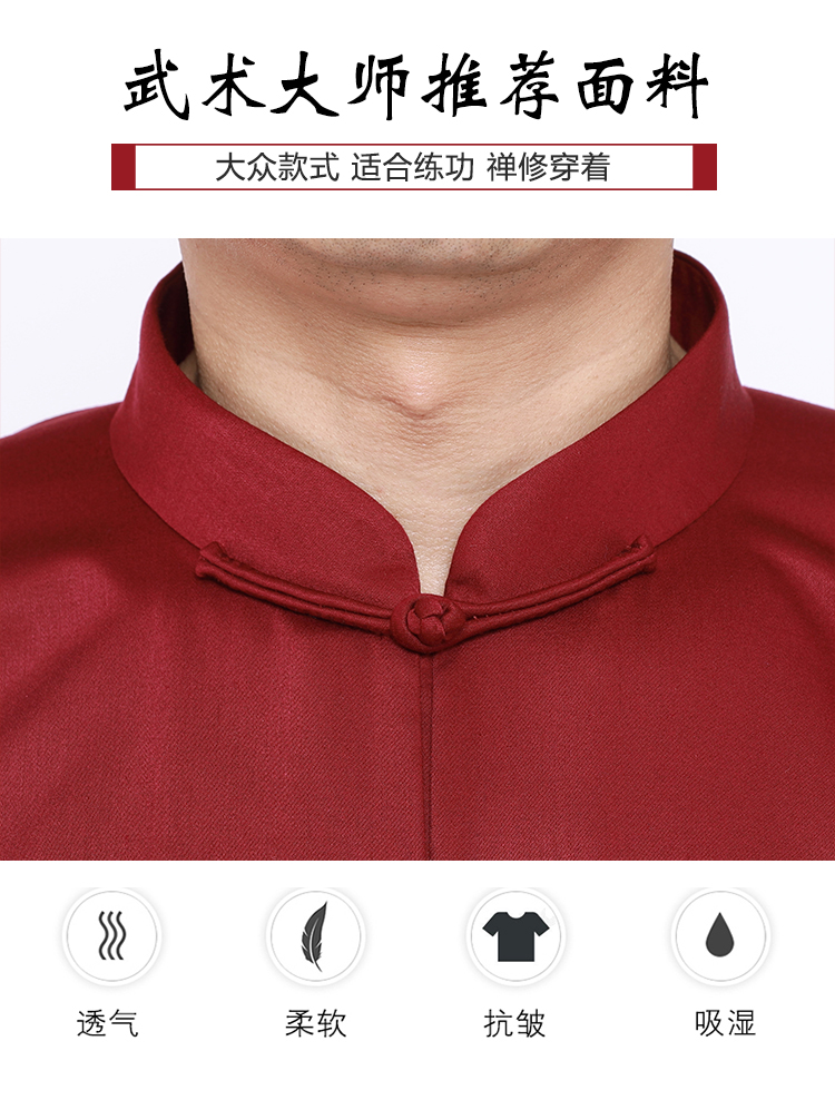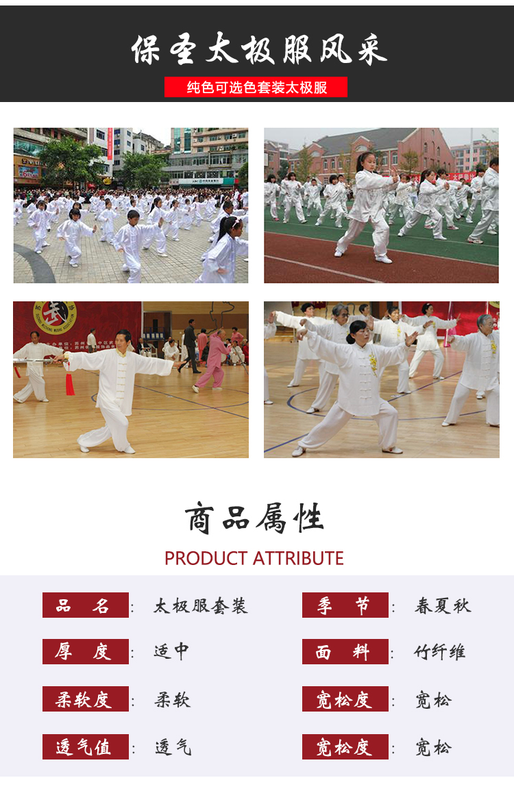 男式竹纤维悬垂度抗皱凉爽舒适防臭纯色套装练功晨练太极服