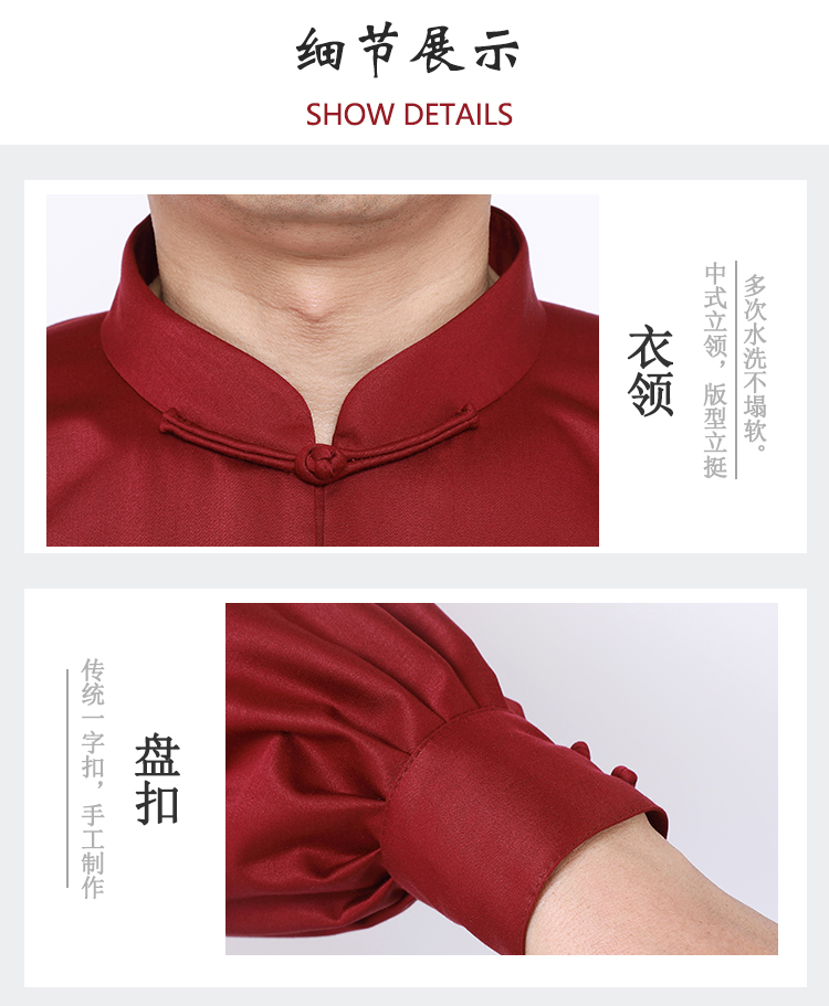 【梭织】 男式休闲透气抗皱耐磨有质感骨感黑白镶色唐装套装练功服