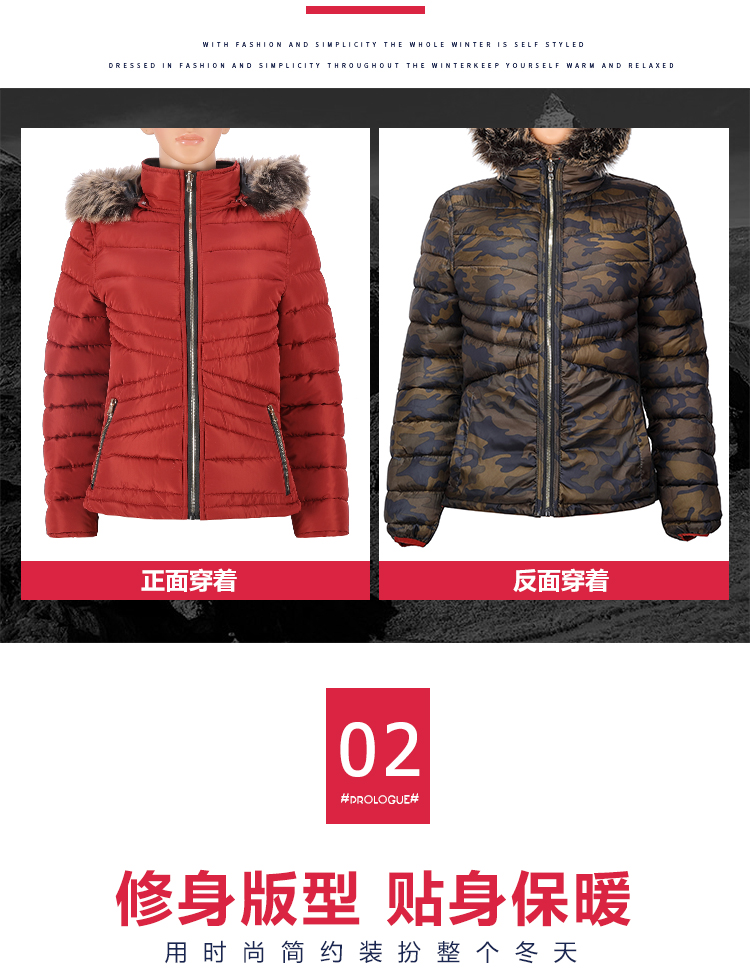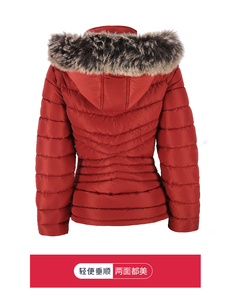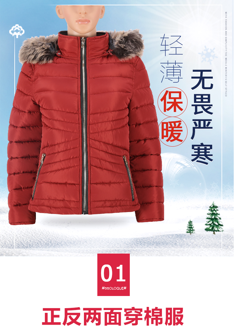 女式常规款两面穿时尚保暖带帽毛棉夹克棉服