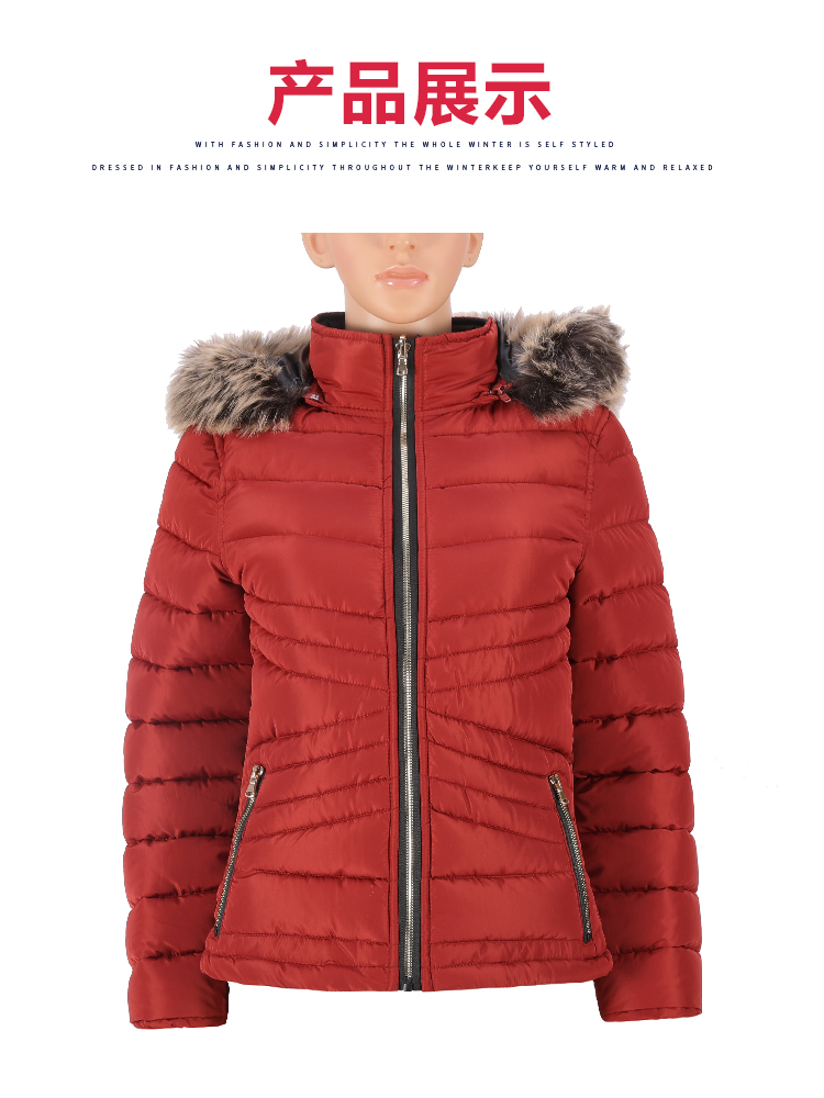 女式常规款两面穿时尚带帽毛棉夹克棉服