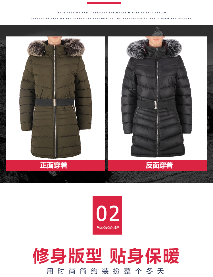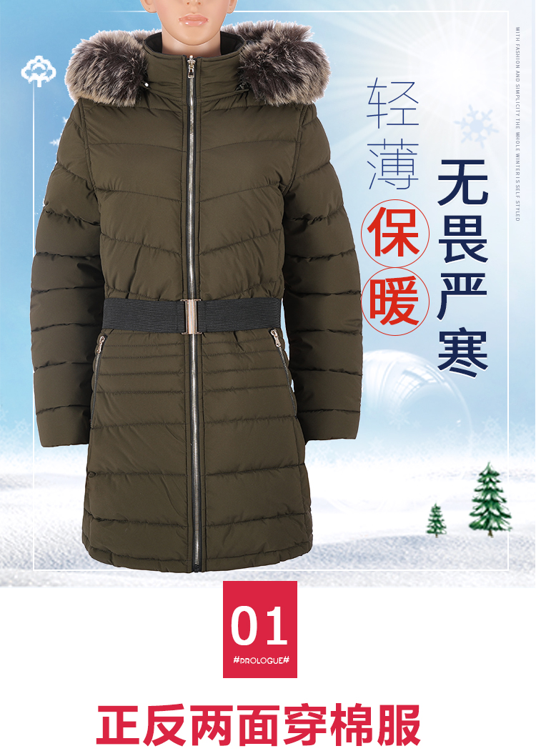 女式常规款两面穿时尚保暖带帽毛棉夹克棉服
