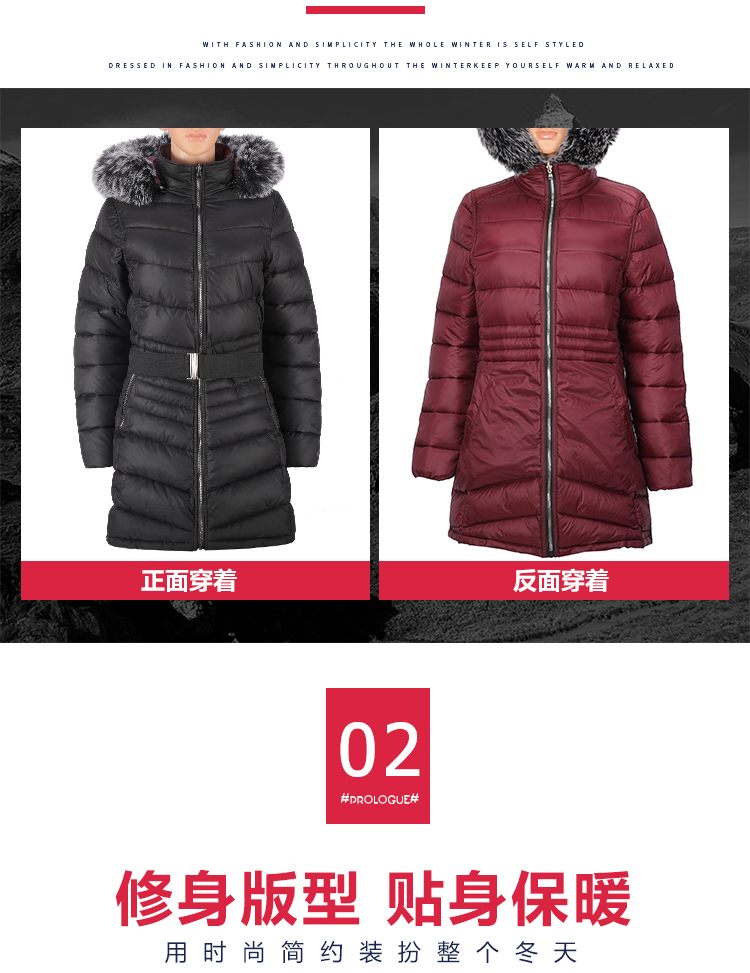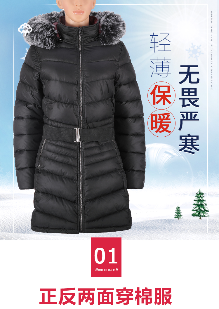 女式常规款两面穿时尚保暖带帽毛棉夹克棉服