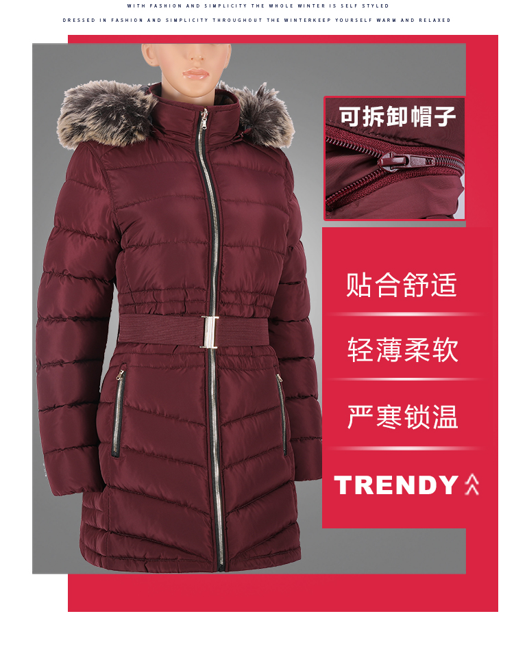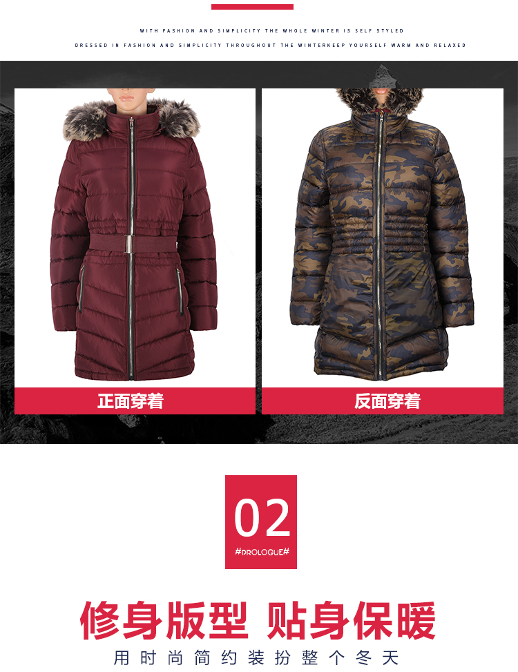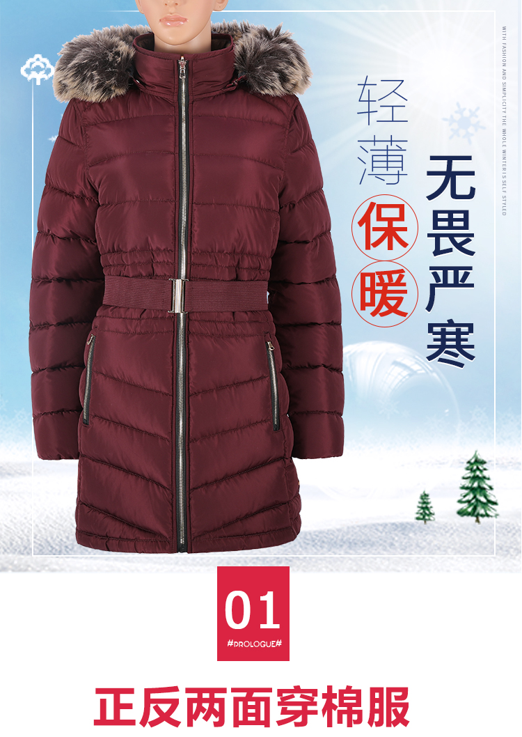 女式常规款两面穿时尚保暖带帽毛棉夹克棉服