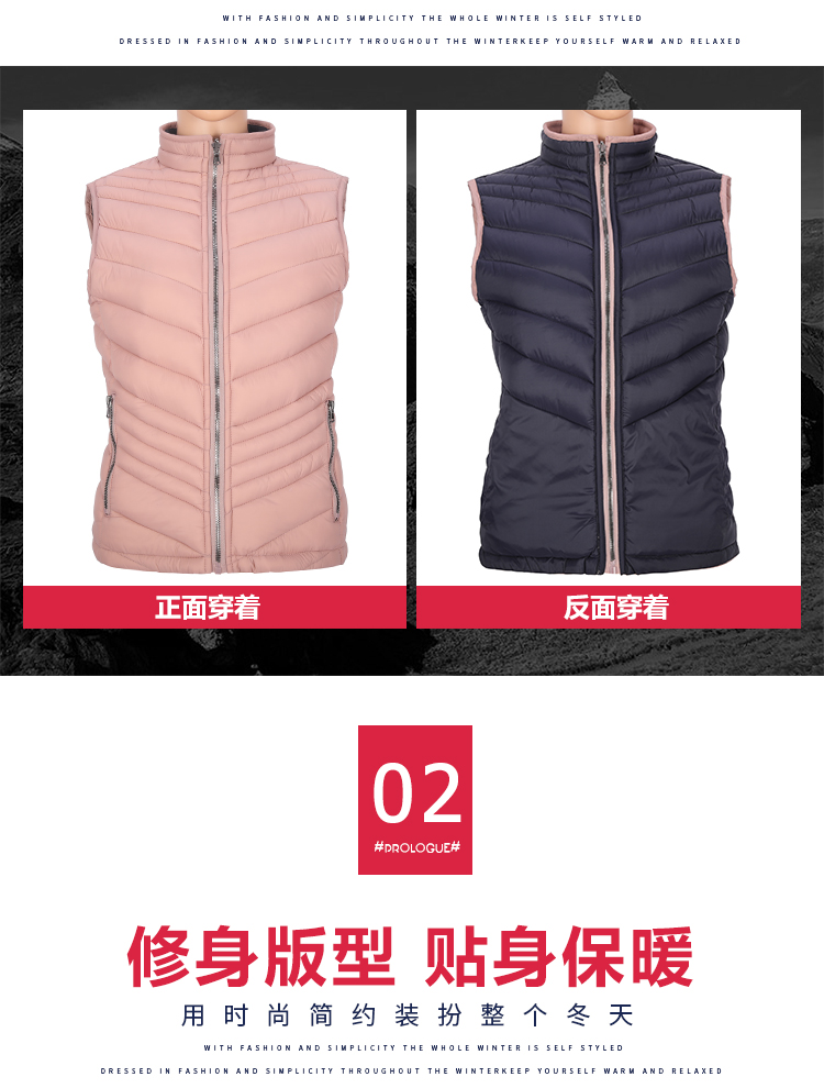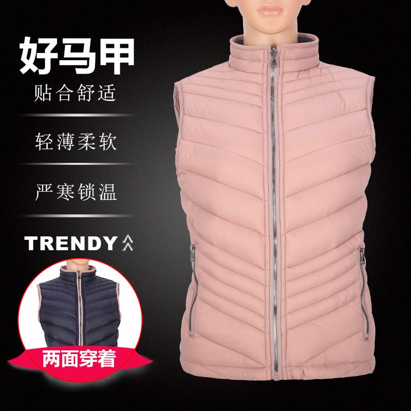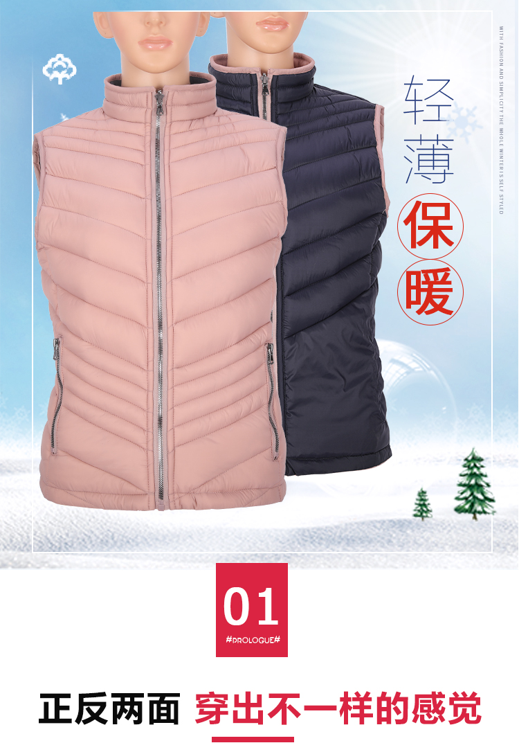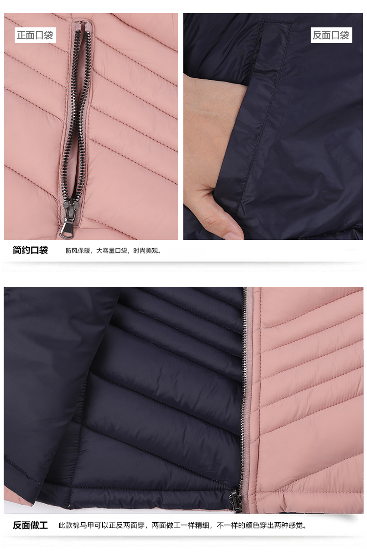 时尚快干透气双面穿轻薄防水防风女式保暖棉衣背心马甲