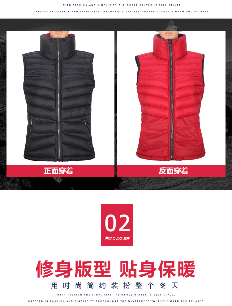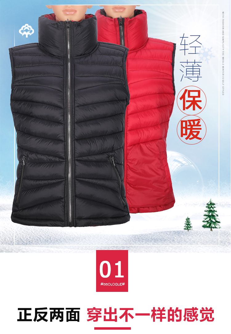 时尚快干透气双面穿轻薄防水防风女式保暖棉衣背心马甲