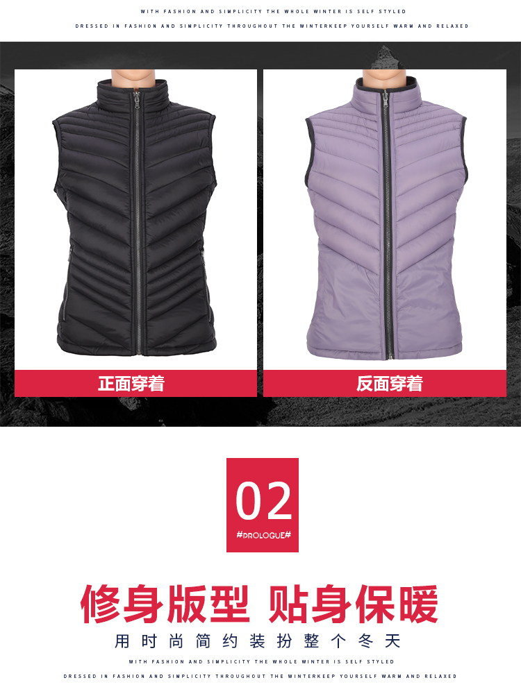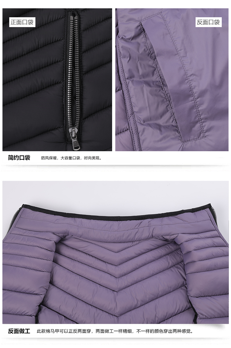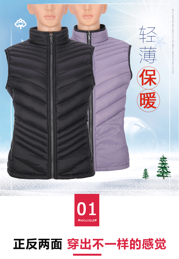 时尚快干透气双面穿轻薄防水防风女式保暖棉衣背心马甲