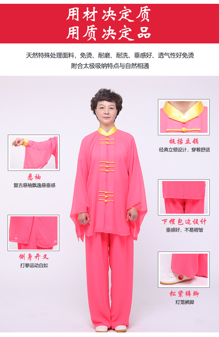 太极服女飘逸手工定做女士高档太极拳剑三件套夏季武术比赛表演服