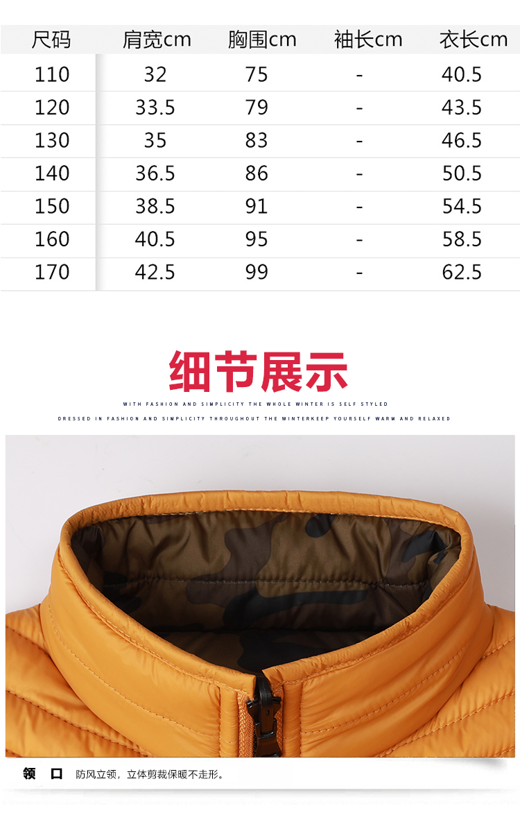 儿童透气双面穿轻薄防水防风时尚快干保暖棉马甲