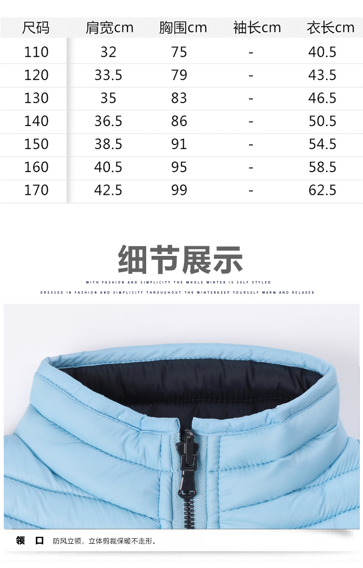 儿童透气双面穿轻薄防水防风时尚快干保暖棉马甲