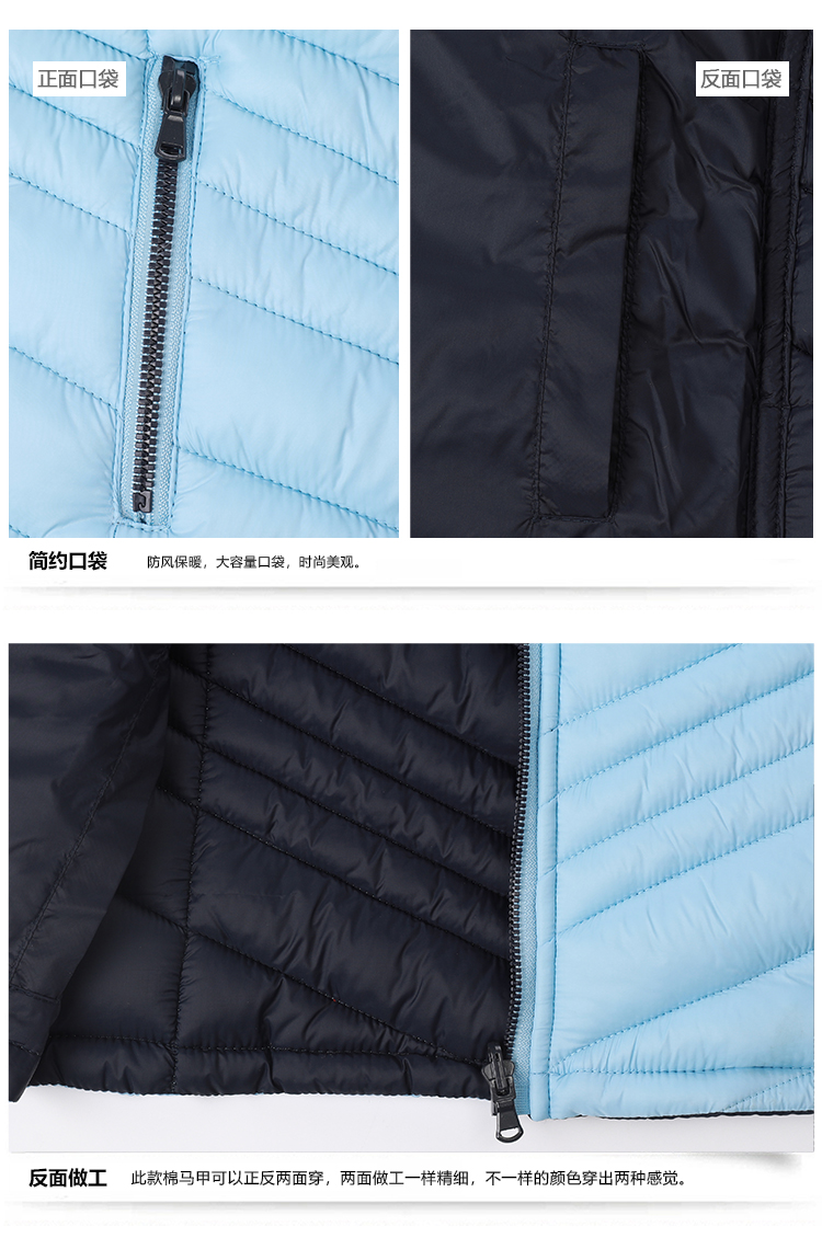 透气双面穿轻薄防水防风时尚快干女式冬季侧罗纹保暖仿羽绒服夹克