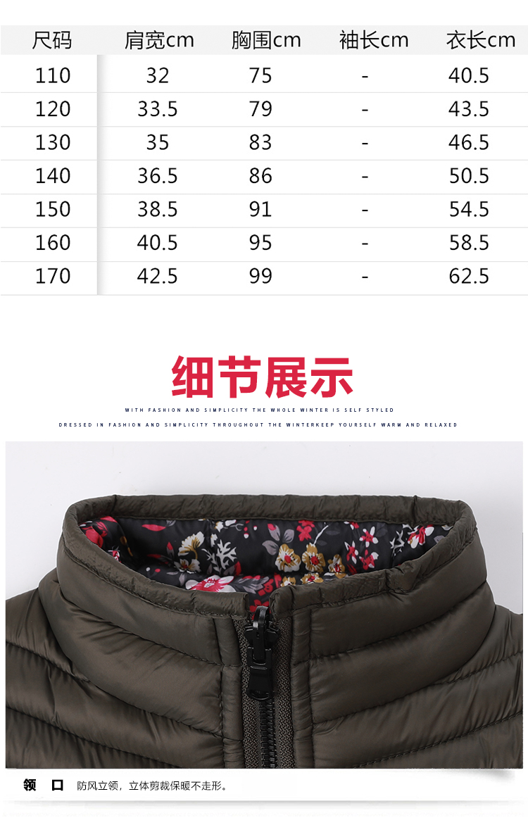 儿童透气双面穿轻薄防水防风时尚快干保暖棉马甲