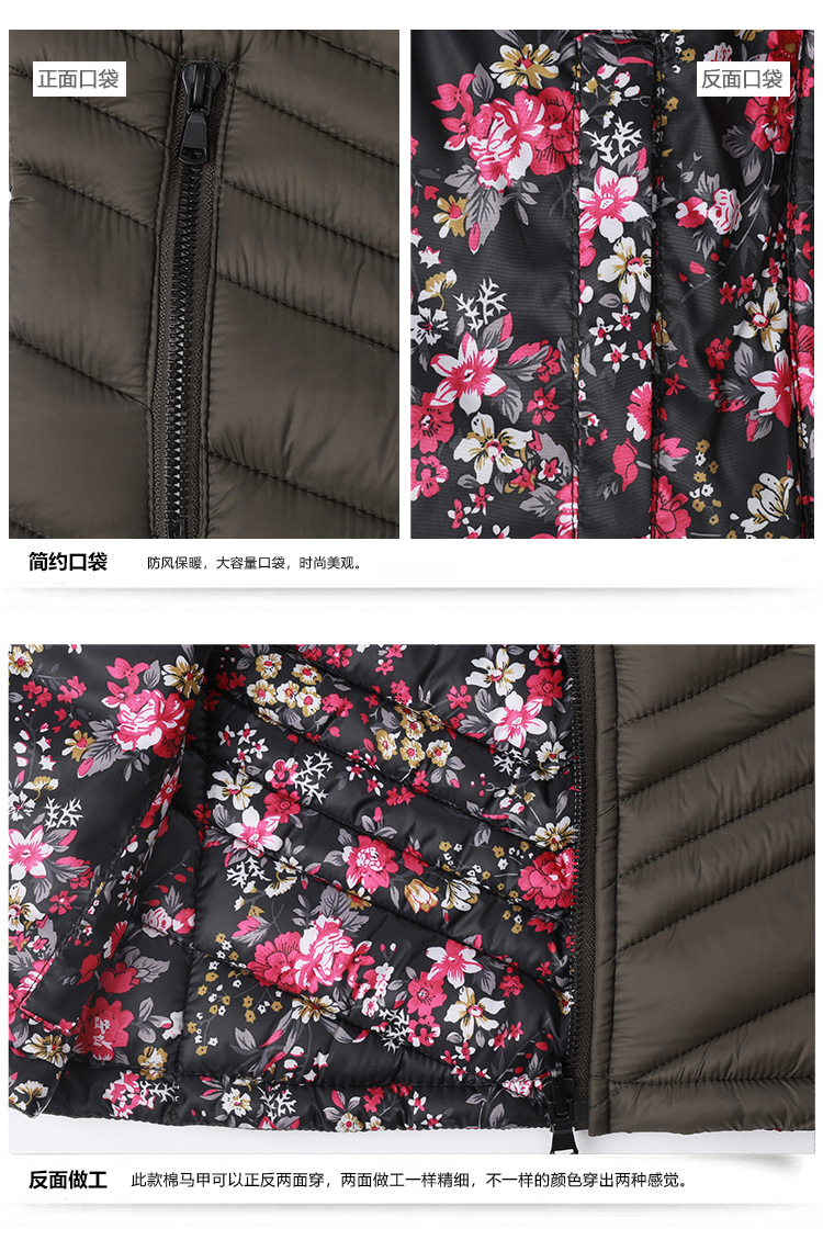 时尚透气双面穿轻薄防水防风女式冬季保暖仿羽绒服夹克定制批发